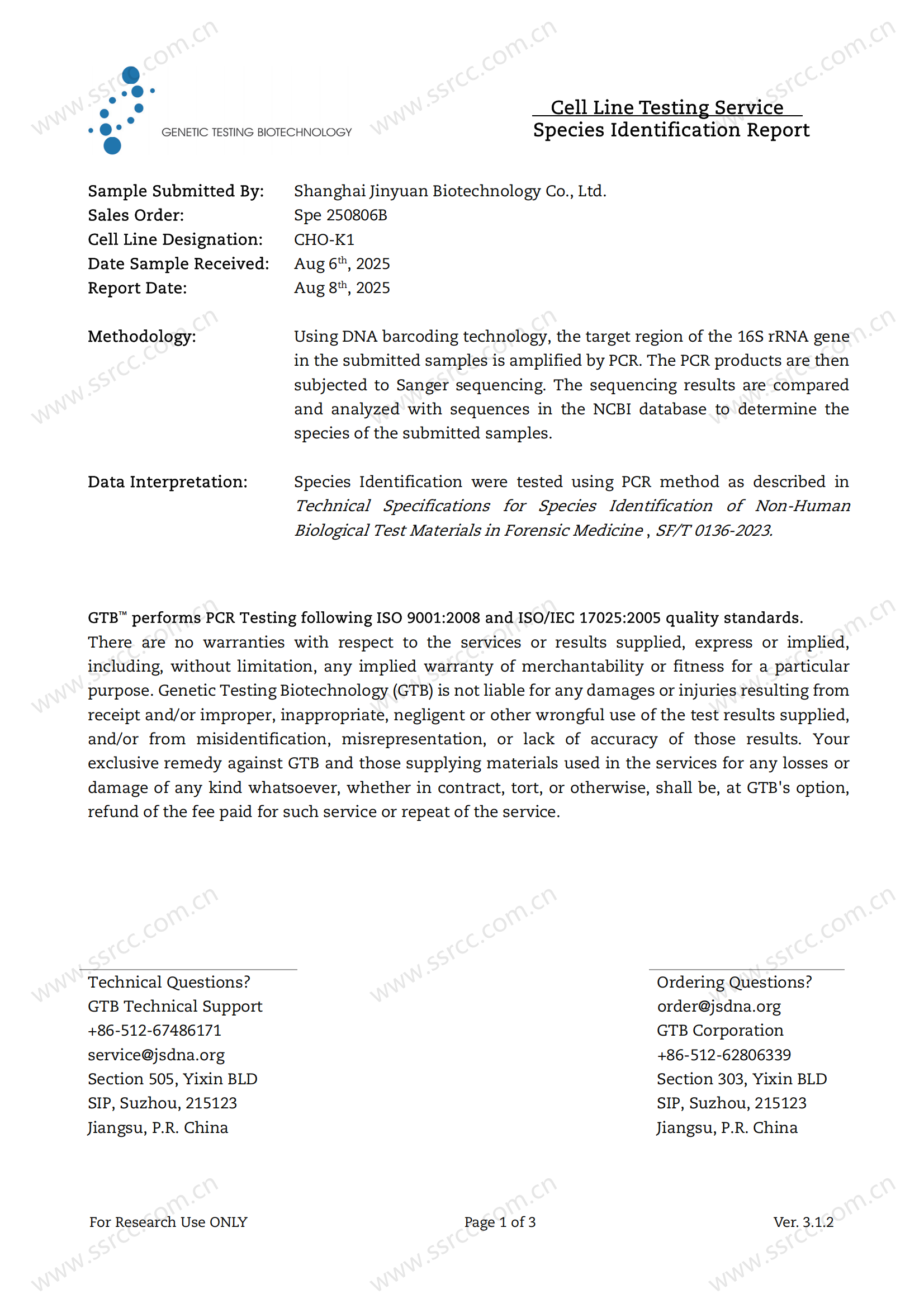 该细胞株是源自成年中国仓鼠卵巢深入活体组织切片的CHO细胞的亚克隆,细胞驯化前的培养基的培养条件:F12K培养基(SIGMA,货号N3520,添加NaHCO3 2.5g/L),90%;复苏CHO-K1细胞转入T25 cm2细胞培养瓶,以F12K基础培养基添加10%血清培养,待细胞长满单层后,加入 0.25 % 胰蛋白酶消化,传代至装有完全培养基的T25 cm2细胞培养瓶(Corning)中继续培养,当细胞铺满瓶底时,即得贴壁 CHO-K1 细胞。取贴壁CHO-K1 细胞,换液,加入15 mL含血清的完全基和 15 mL无血清CHO-K1专用培养基,2天后吸出一半培养液,加入等量的无血清CHO-K1,每2天重复一次此操作,直到胎牛血清浓度低于 1 %后,以基础培养基B001 继续培养,即培养基中血清浓度依次以 5 %,2 .5 %,1.25%,0.625 %,0 %降低。细胞在无血清CHO-K1专用培养基中密度达到5 ×10^6cells/ mL时,即得悬浮 CHO-K1 细胞。培养条件:37℃,5 % CO2培养箱中静置培养。 |