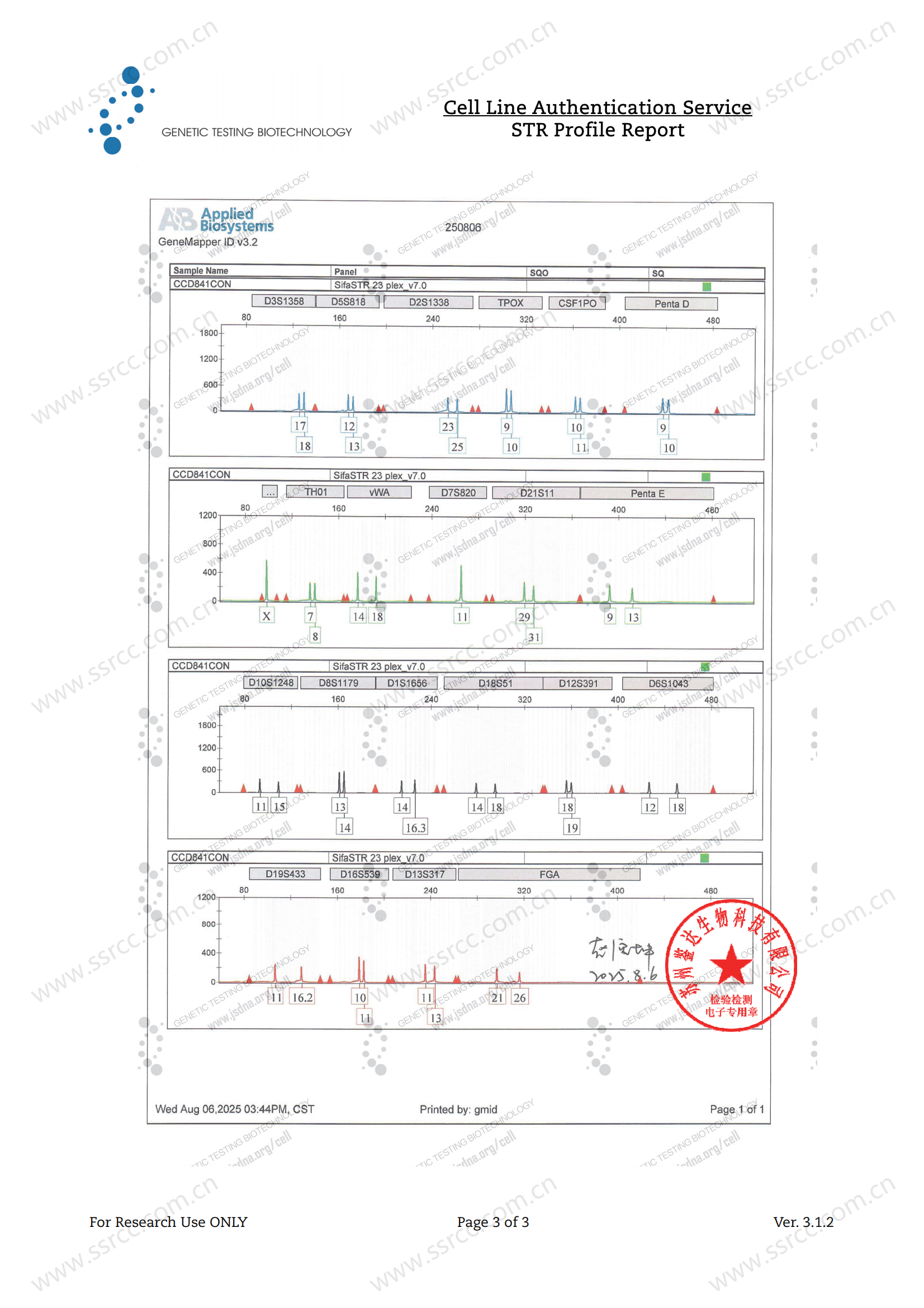 CCD 841 CoN细胞是拉伸的上皮样细胞,在培养中生长为扁平且杂乱无章的层。可以观察到一些圆形细胞堆积在附着的群体上,碎片中等至重。CRL-1790 是一种正常的人类二倍体细胞系,因此它最终会衰老。人口倍增水平 (PDL) 信息可在特定批次的分析证书上找到,并可在 ATCC 网站上找到。 |