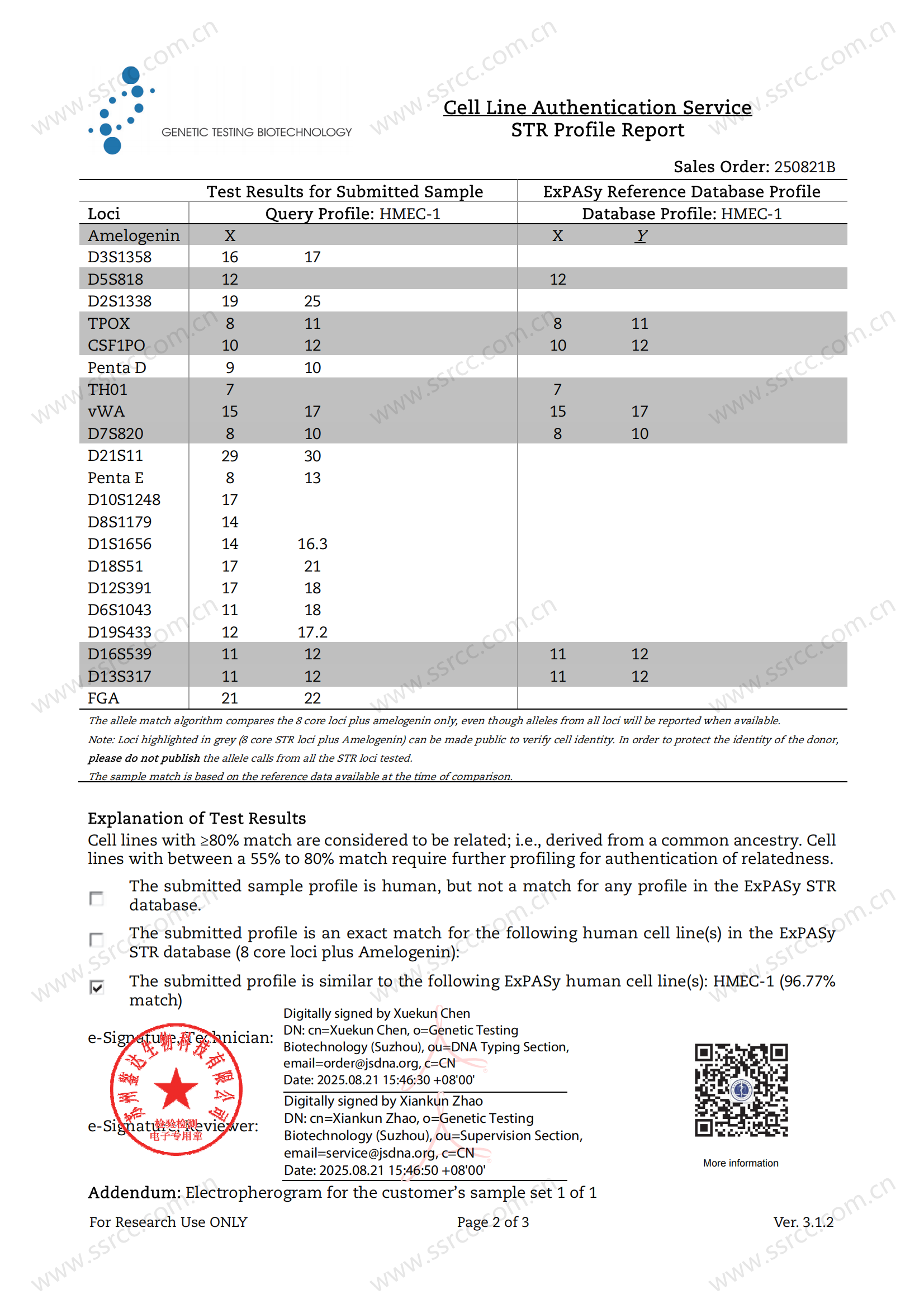 Amelogenin: X,Y CSF1PO: 10, 12 D13S317: 11, 12 D16S539: 11, 12 D5S818: 12 D7S820: 8, 10 THO1: 7 TPOX: 8, 11 vWA: 15, 17 |