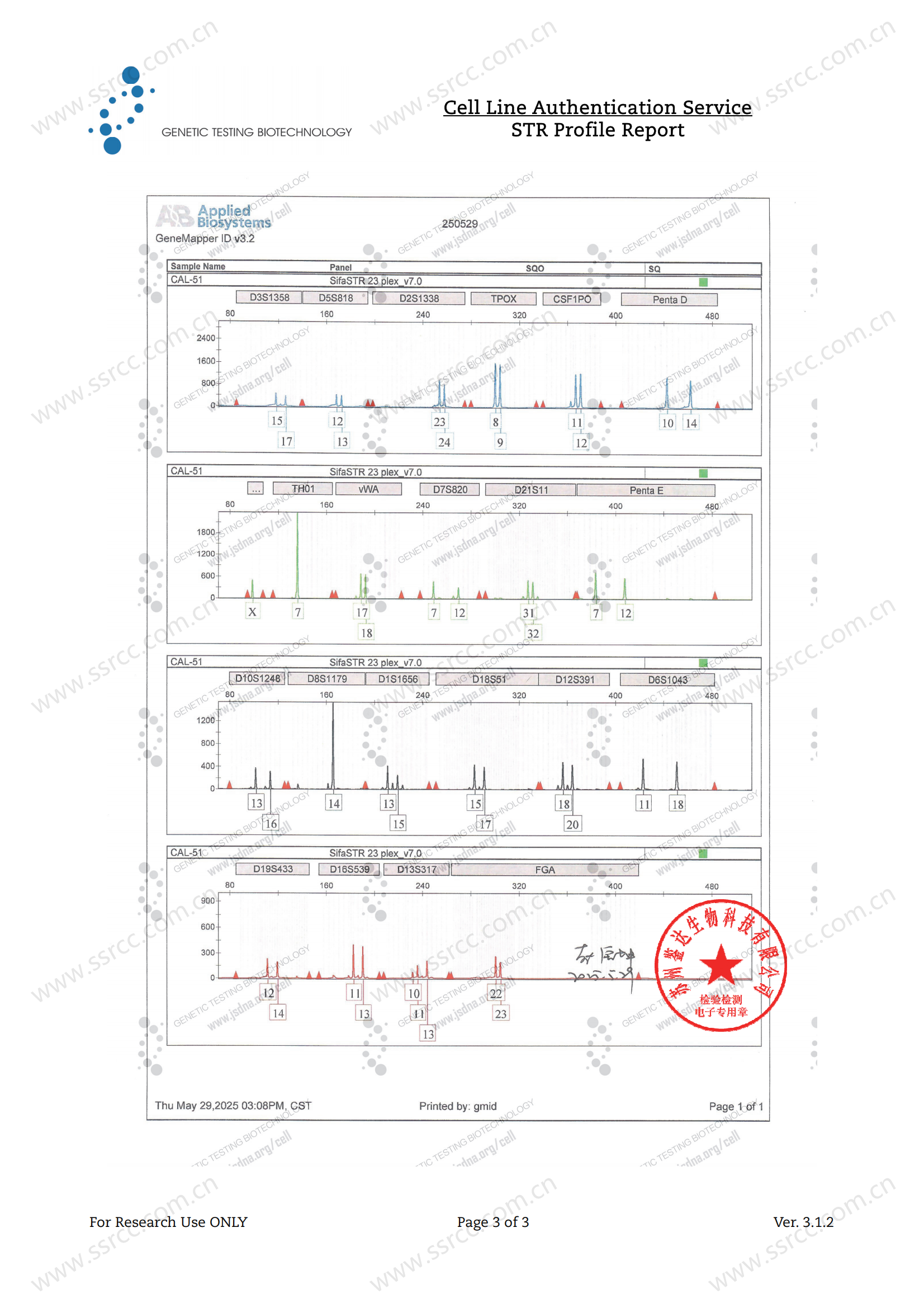 Amelogenin X CSF1PO 11,12 D2S1338 23,24 D3S1358 16,17 D5S818 12,13 D7S820 7,12 D8S1179 14 D13S317 11,13 D16S539 11,13 D18S51 15,16,17 D19S433 12,14 D21S11 31,32 FGA 22,23 Penta D 10,14 Penta E 7,12 TH01 7 TPOX 8,9 vWA 18 |