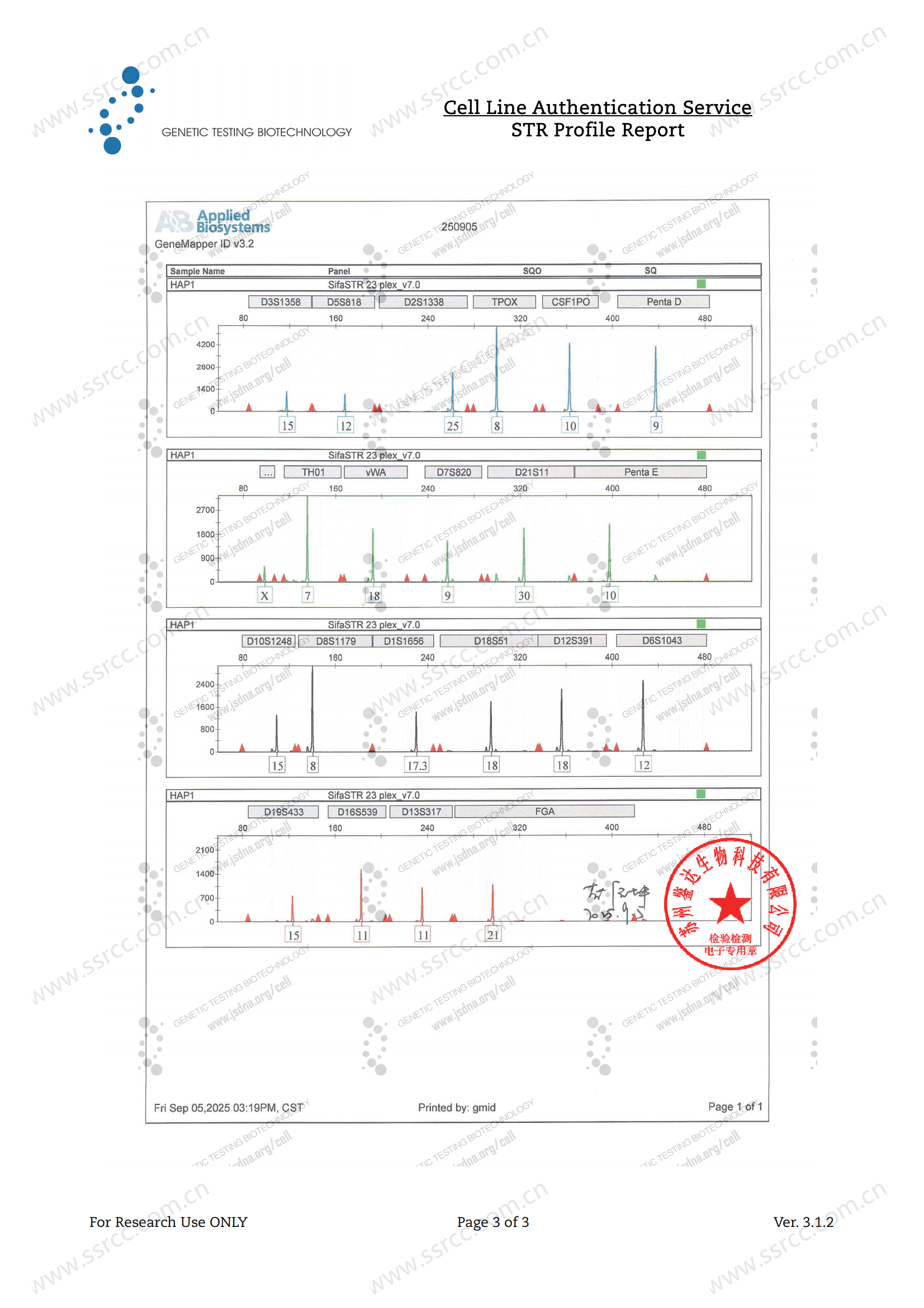 Amelogenin X CSF1PO 10 D1S1656 17.3 D2S441 14 D2S1338 25 D3S1358 15 D5S818 12 D7S820 9 D8S1179 8,14 D10S1248 15 D12S391 18 D13S317 11 D16S539 11 D18S51 18 D19S433 15 D21S11 30 D22S1045 16 FGA 21 Penta D 9 Penta E 10 TH01 7 TPOX 8 vWA 18 |