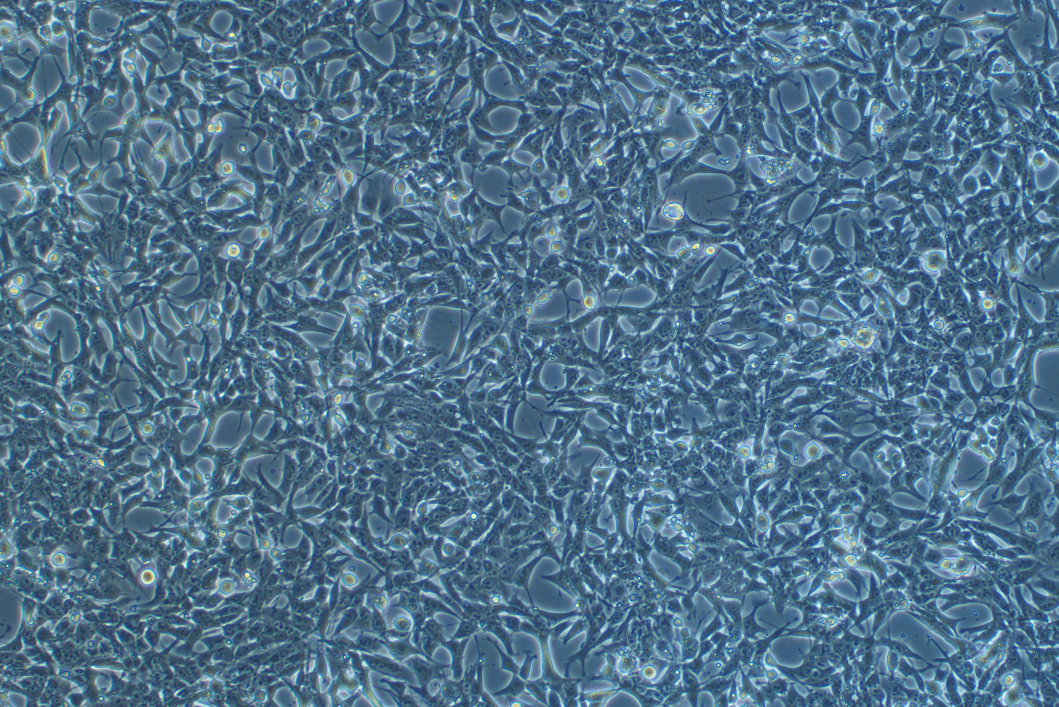 SV40-MES-13细胞的细胞骨架染色突出呈现肌动蛋白,在细胞质中有丰富的平行微丝。有报道称在1uM血管紧张素II存在下,它们会收缩。细胞在软琼脂中形成克隆,SV40大T抗原阳性。 |