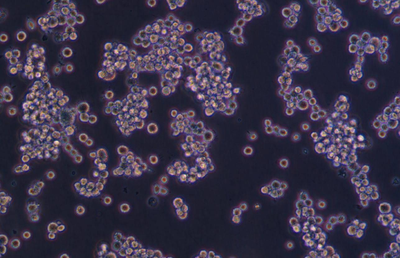 NR8383细胞来源于肺灌洗时的正常大鼠肺泡巨噬细胞 ,NR8383细胞在Gerbil肺细胞连续培养液存在下培养了8-9个 月。随后 ,NR8383细胞不再需要外源生长因子。通过有限稀释法 ,从单个细胞克隆并亚克隆NR8383细胞 ,并3次用 软琼脂亚克隆。 NR8383细胞表现出巨噬细胞的特性:吞噬酵母多糖和铜绿、非特异性脂酶活性、 Fc受体、氧化降解;分泌IL-1、TNF-β和IL-6 ,可重复地响应外源生长因子。NR8383细胞响应博莱霉素 ,分泌TNF-β前体。 NR8383细胞在博莱霉素刺激下 ,TNF-β mRNA表达也上升。NR8383细胞对内毒素敏感 ,1-10ng/ml的LPS水平抑 制增生达50%。即使达到0.001mg/ml的水平 ,LPS抑制还是无毒且在后续过程中可逆的。 NR8383细胞提供了高响 应的肺泡巨噬细胞的均一来源 ,可以用于体外研究巨响细胞相关活性 |