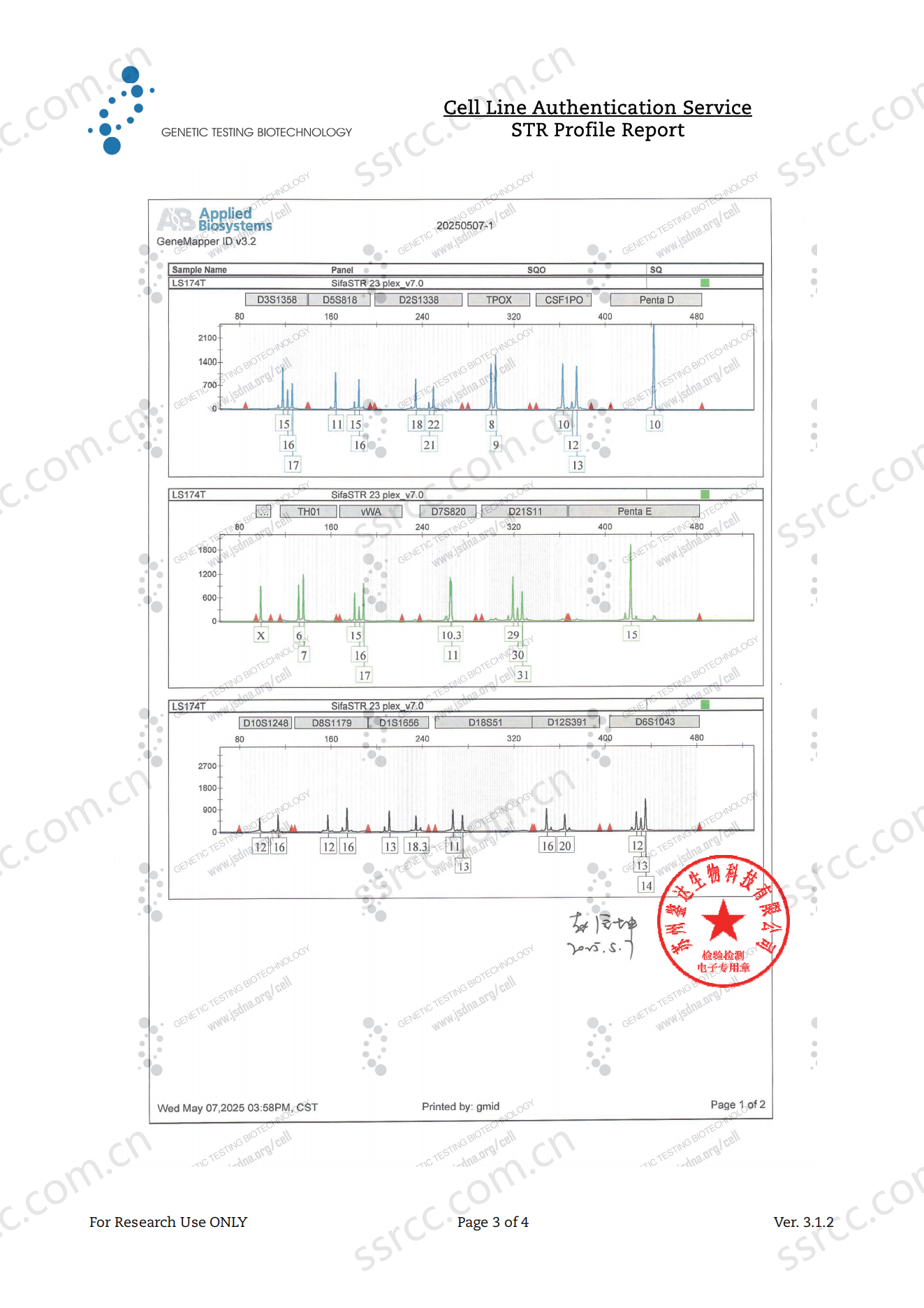 LS 174T是LS 180 (ATCC CL 187)结肠腺癌细胞株的胰蛋白酶化变种。 它比亲本更易传代,象LS 180一样生成大量的癌胚抗原(CEA)。 电镜研究表明有丰富的微丝和细胞质粘液素液泡。 直肠抗原3阳性。 p53抗原表达阴性,但mRNA表达阳性。 与ATCC CL-187来源于同一个肿瘤。LS 174T细胞角蛋白染色阳性。 癌基因c-myc, N-myc, H-ras, N-ras, Myb, 和 fos的表达呈阳性。 癌基因k-ras和sis的表达未做检测。 |