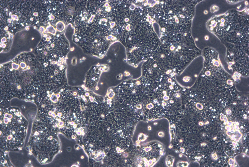 NCI-N87细胞表达表面糖蛋白癌胚抗原(CEA)和TAG 72, 并且没有左旋多巴胺脱羧酶(DDC)活性。它们的血管活性的 肠肽(VIP)受体活性极低并缺乏胃泌激素受体。 它们表达蕈毒碱胆碱受体。没有证据表明存在N-myc, L-myc, myb和 EGF受体基因的重组。这个细胞株表达的c-myc和c-erb-B 2 RNA水平与其它细胞株相当。以下基因不表达: N-myc, L-myc, c-cis, IGF-2, 或胃泌激素释放肽。据报道NCI-N87 细胞的植板率为4.3%。 |