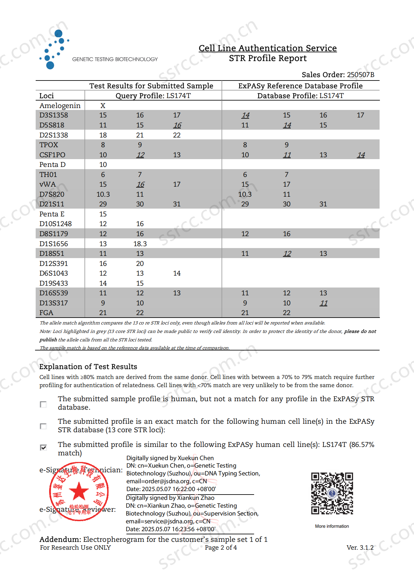LS 174T是LS 180 (ATCC CL 187)结肠腺癌细胞株的胰蛋白酶化变种。 它比亲本更易传代,象LS 180一样生成大量的癌胚抗原(CEA)。 电镜研究表明有丰富的微丝和细胞质粘液素液泡。 直肠抗原3阳性。p53抗原表达阴性,但mRNA表达阳性。 与ATCC CL-187来源于同一个肿瘤。LS 174T细胞角蛋白染色阳性。癌基因c-myc, N-myc, H-ras, N-ras, Myb, 和 fos的表达呈阳性。 癌基因k-ras和sis的表达未做检测。 |