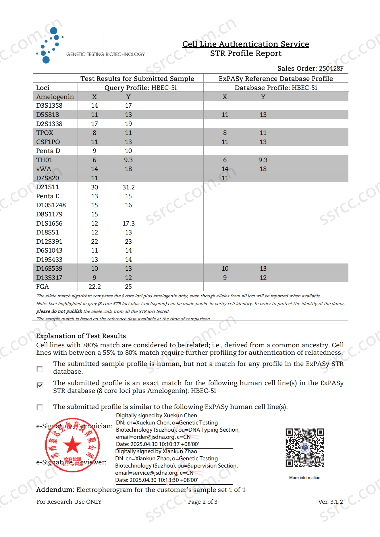 HBEC-5i 是一种从患者大脑皮层中分离出来的脑微血管内皮细胞。细胞来源于从死于各种原因的患者身上获得的人类 大脑皮层的小碎片。这些大脑没有任何病理异常。进行分离和纯化程序并培养细胞。然后用含有 SV40 大 T 抗原的质 粒转染它们。该细胞系由 Kathryn Kellar 博士1994年保藏。 |