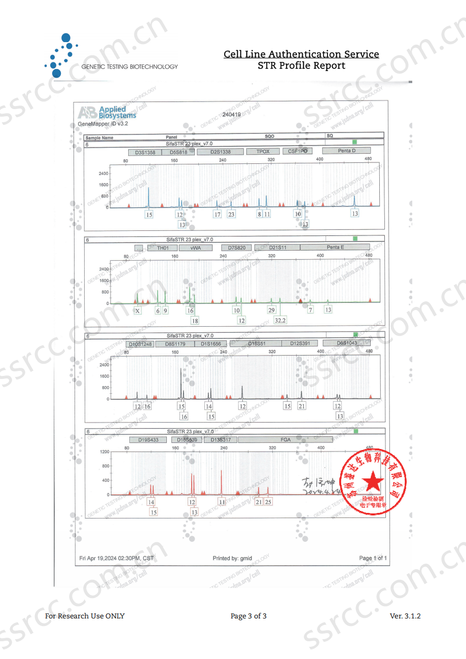 TT细胞由LeongSS等,自一位77岁白人女性甲状腺髓样癌患者的穿刺活检样本中建立。TT细胞持续产生高水平的降血钙素和CEA。更换培养基后24h和72h,在培养基中检测到的免疫活性的降血钙素浓度分别为3900pg/106个细胞和7700pg/106个细胞。72小时后CEA积累浓度超过27ng/106个细胞;该细胞最初是在RPMI1640培养液中培养,可产生神经肽,但还不知道在F12培养液中培养是否会产生。 |