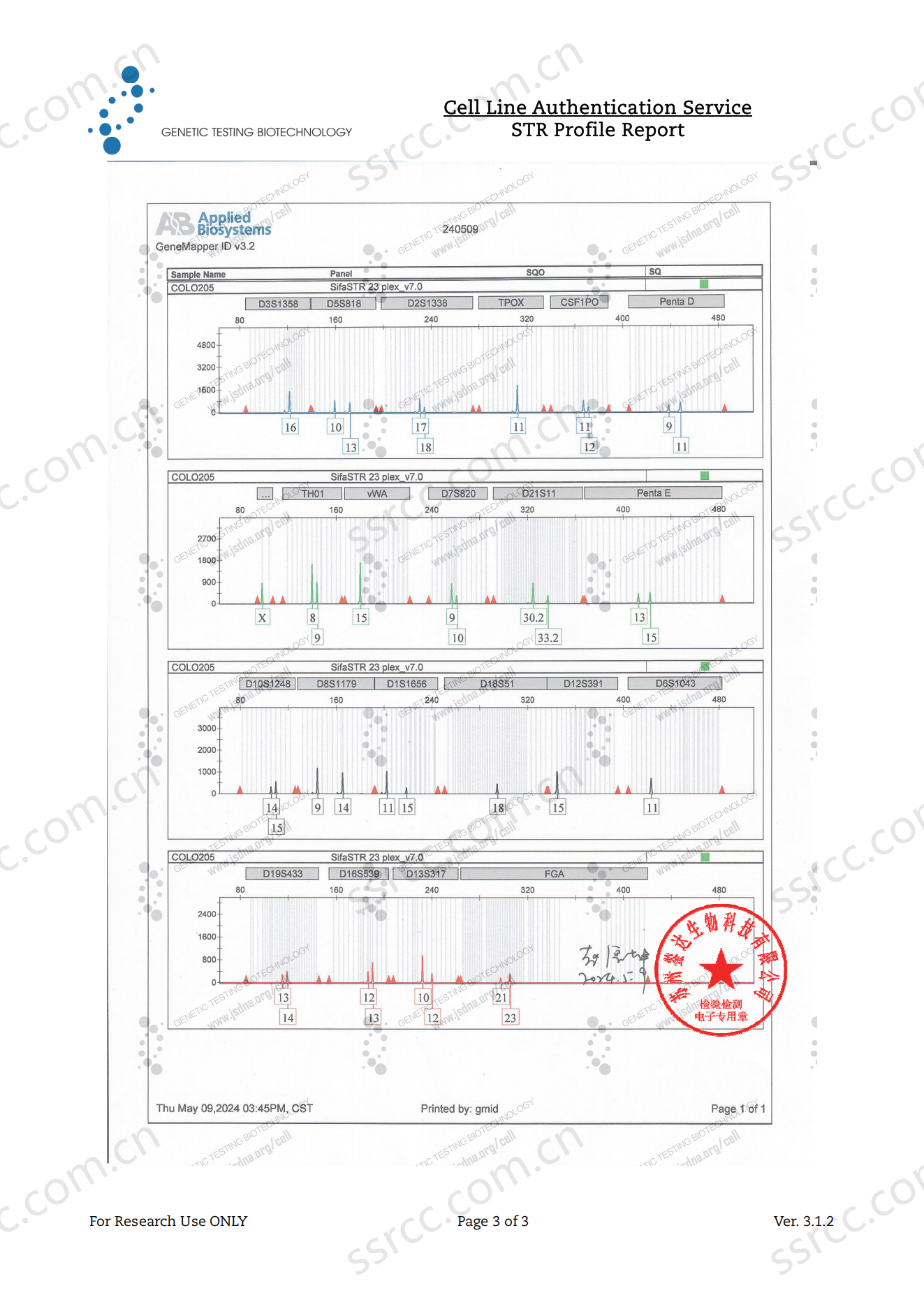 Amelogenin: X CSF1PO: 11,12 D13S317: 10,12 D16S539: 12,13 D5S818: 10,13 D7S820: 9,10 THO1: 8,9 TPOX: 11 vWA: 15 |